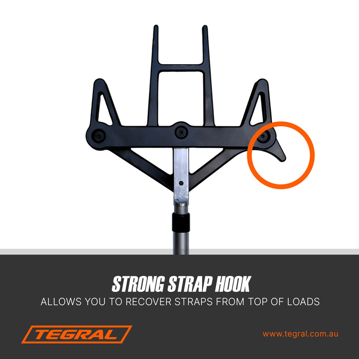 - Effortless Operation: Featuring a flexible yet strong plastic construction, the Truckers Trident provides unmatched durability and convenience. The strong aluminum spigot ensures reliable extension, while the angled head allows for smooth placement of angles and precise strap positioning, enhancing load stability.