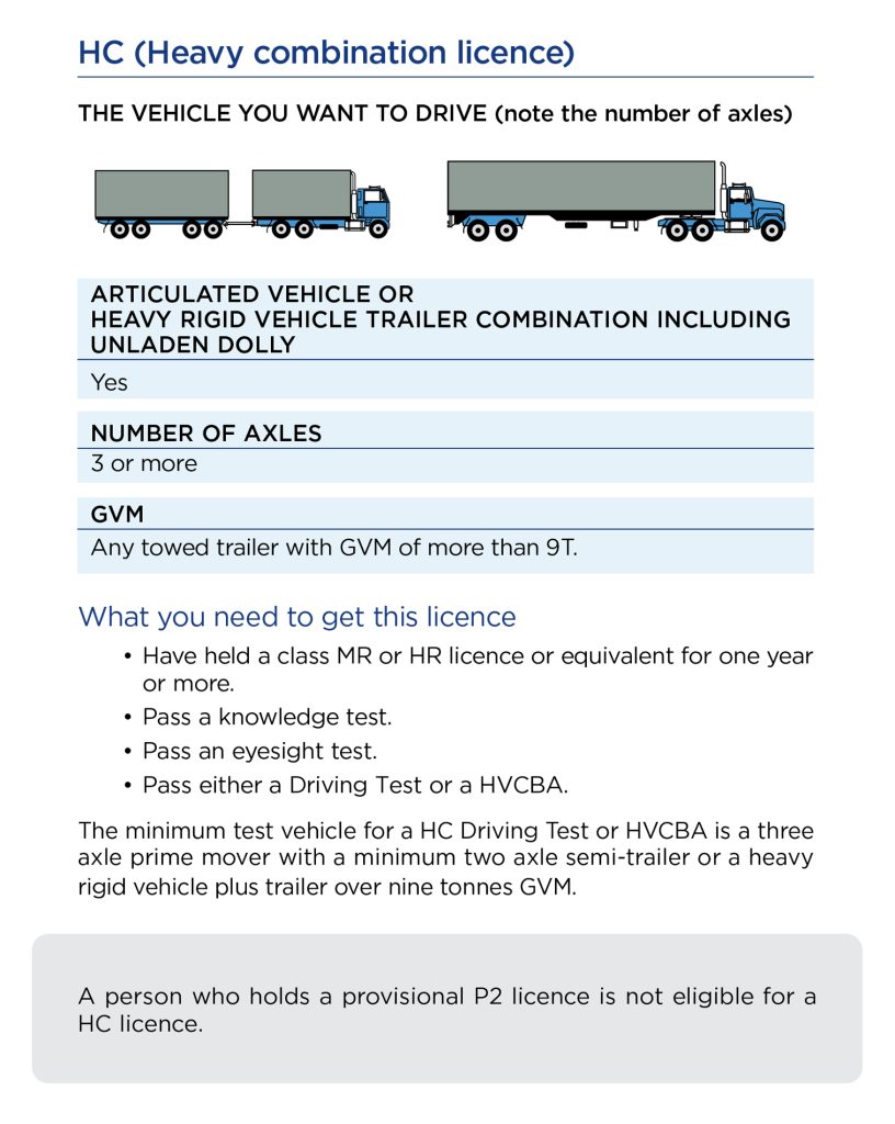 If you’re applying for a Multi Combination (MC) class licence, you must complete the HVCBA.